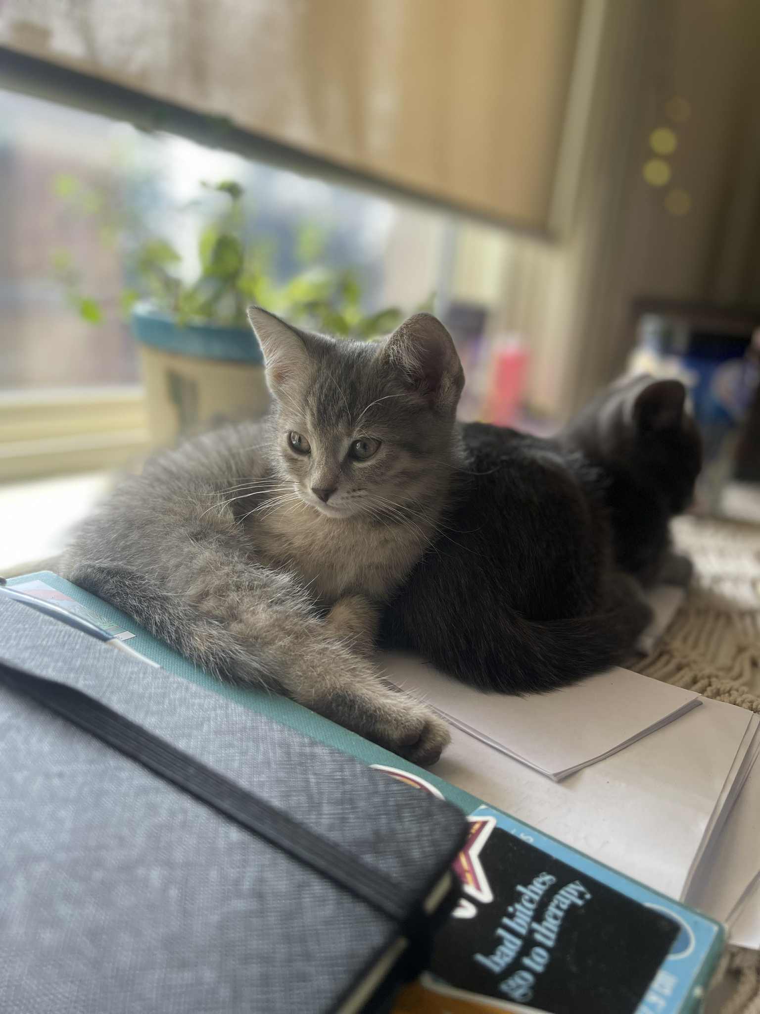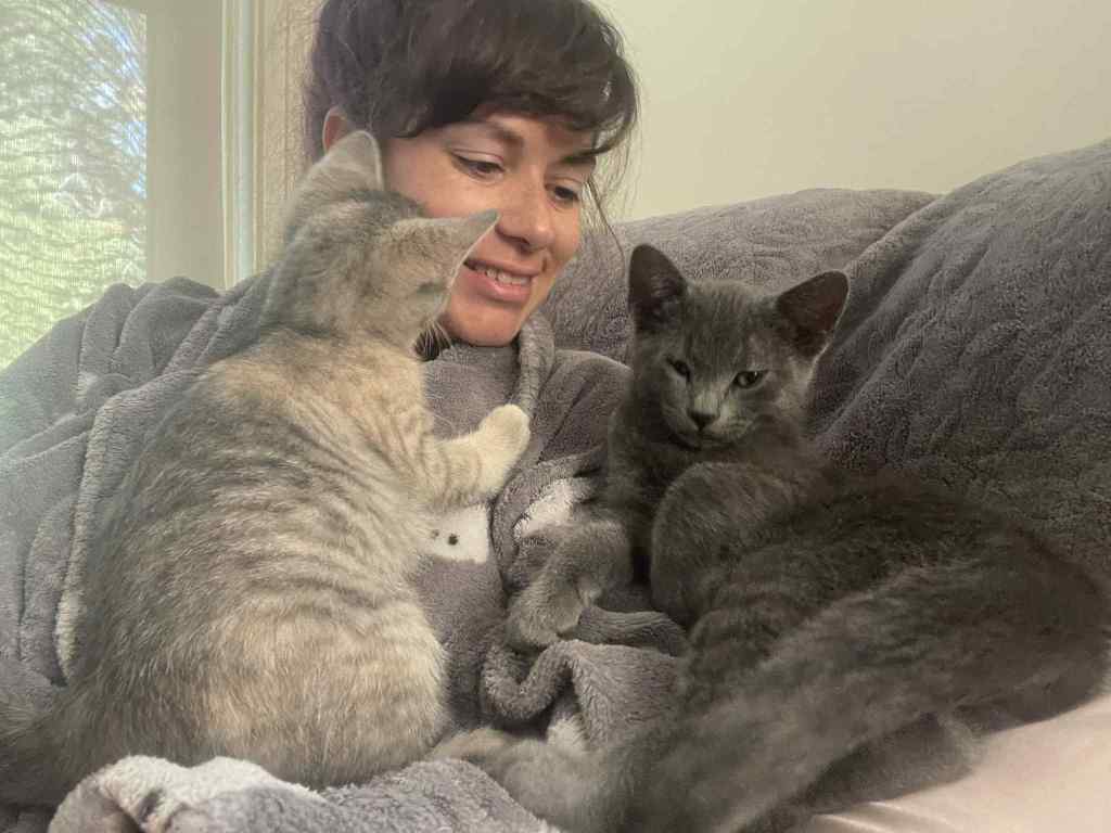 The kitties keep me in pretty good spirits. They are so freakin sweet. They are such sucks and follow us around. They love giving us kisses or whatever licking our faces is supposed to mean. Especially when we’re sleeping but they just go straight for me I don’t know why and I wake up to being mauled with licks. I’ll believe they are love licks until told otherwise. I was waiting to pick up my Vyvanse so I took a necessary nap and they came to nap with me. My heart can’t take it.